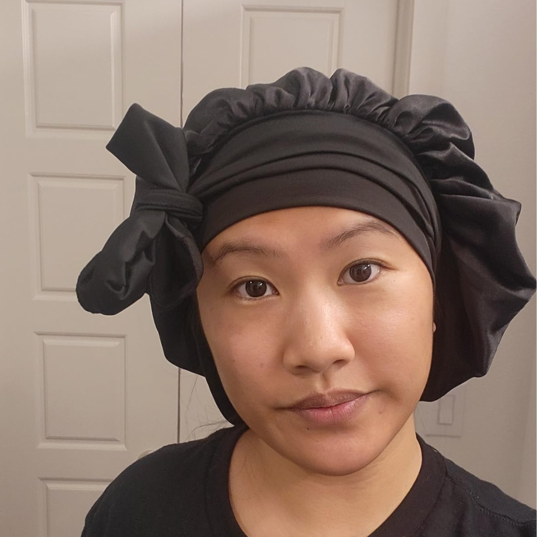 „Diese Hauben sind einfach göttlich! Die glatte Textur von Numoya Unique Satin Weave ist eine Wohltat für mein Haar, reduziert Frizz und sorgt für ein unvergleichlich luxuriöses Gefühl.“
